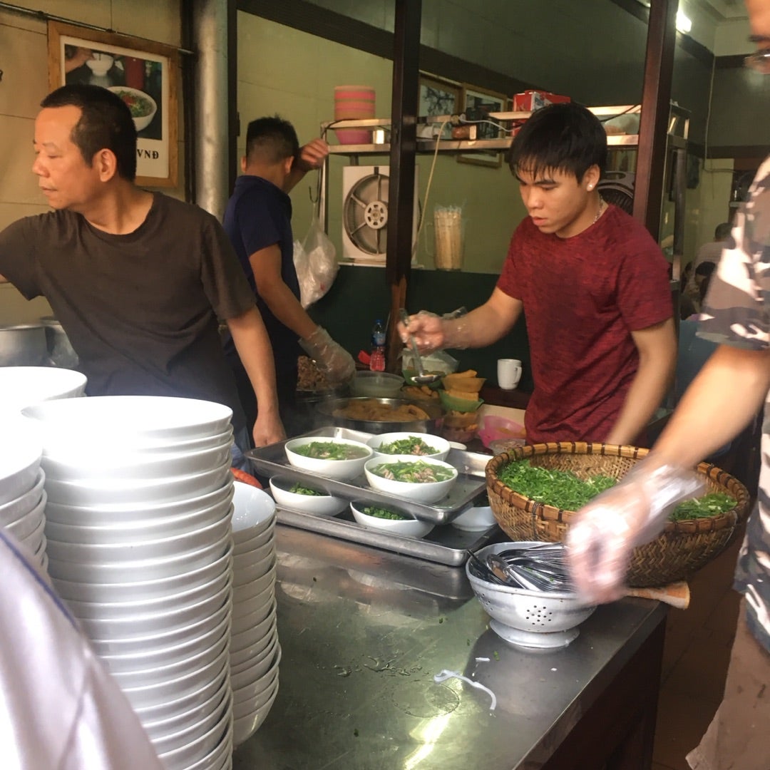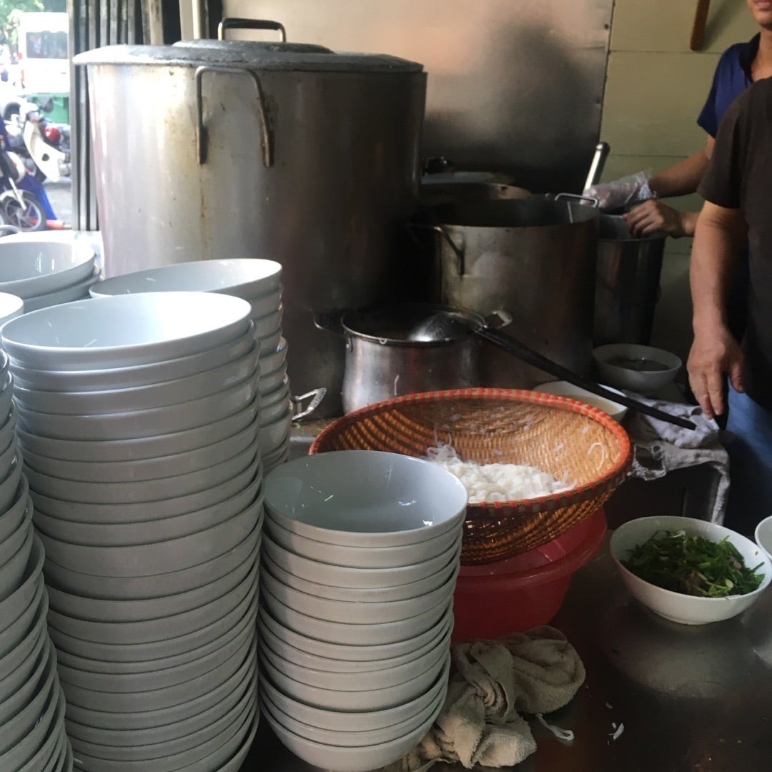 ビジネス街からは外れた立地で、地元の人が朝から並ぶ人気店。ここで私は産まれて初めてのベトナムでのフォーを体験しました。