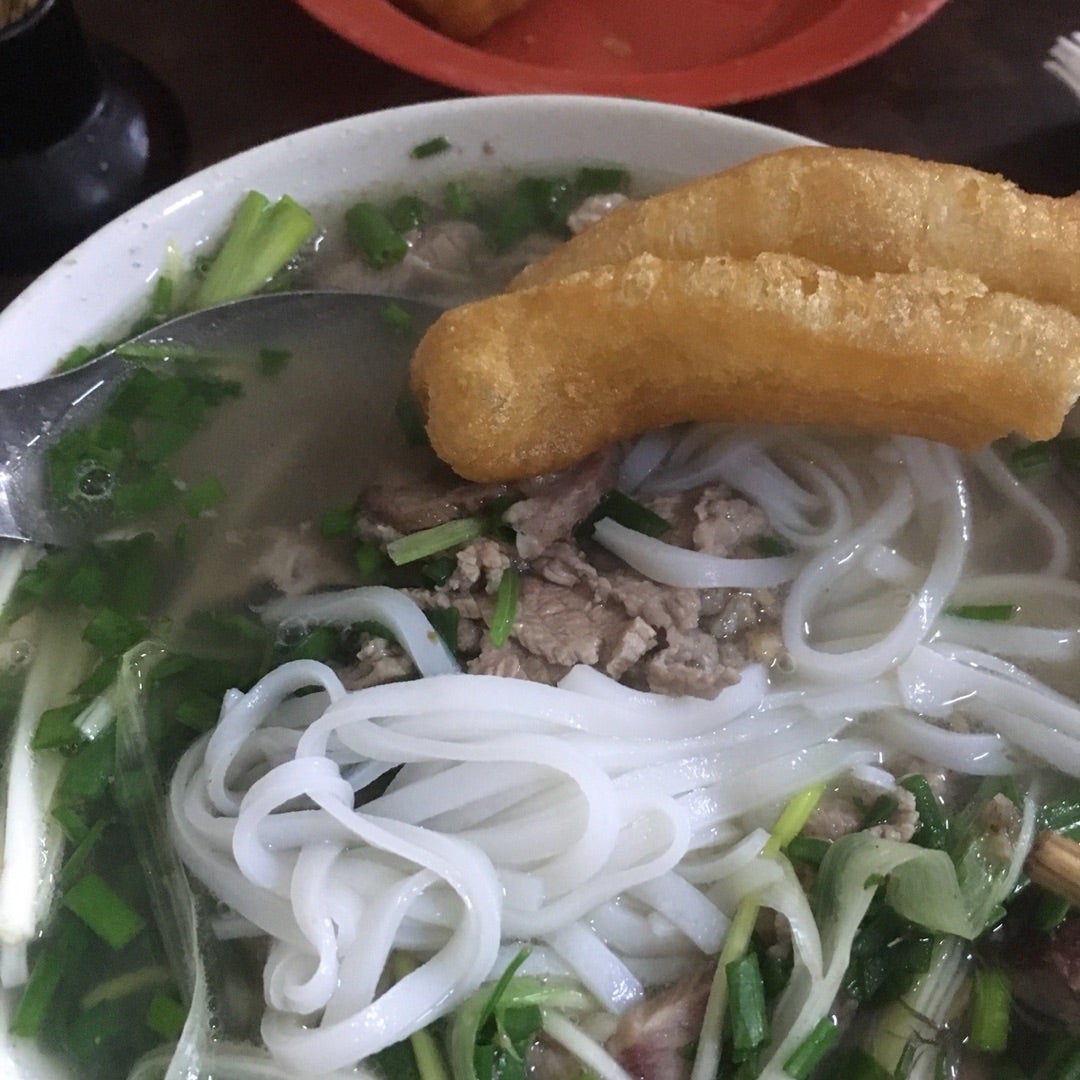 息子2人も大感激して食べた牛肉フォー。中国で言うところの油条つき。暑いときにリトライしたいフォーです。
